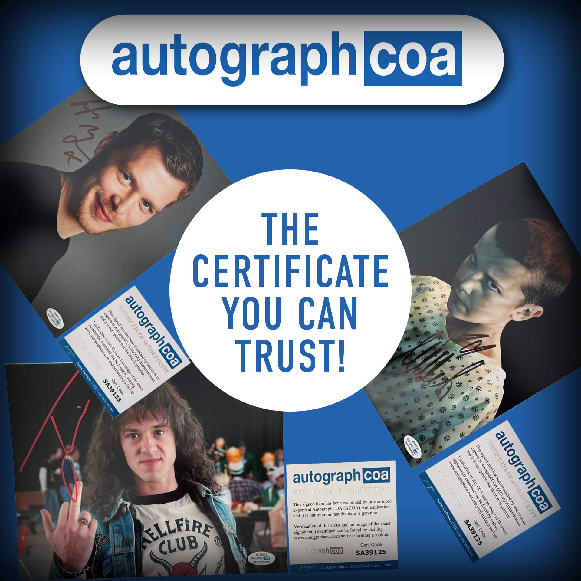 - Auf Wunsch sind alle Autogramme mit einem ACOA-Zertifikat erhältlich, das die Echtheit zusätzlich bestätigt.